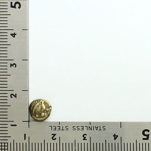 「スターテル」とは古代ギリシャ語で「重さ」を意味し、ドラクマやオボルが登場する以前の基準となる貨幣単位でした。リディアでは最大のコイン(約14.2g)を1スターテルとし、そこから1/2、1/3、1/6、1/12、1/24、1/48、1/96と重量によって細分化されています。最も小さい1/96スターテルは0.15gほどしかなく、極小の粒のようですが、それでもライオンの刻印はしっかりと打たれています。