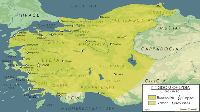 アッシリア帝国崩壊後のオリエント四大国(エジプト,新バビロニア,メディア,リディア)の一角を占め、紀元前7世紀には小アジアの大半を影響下に置きました。