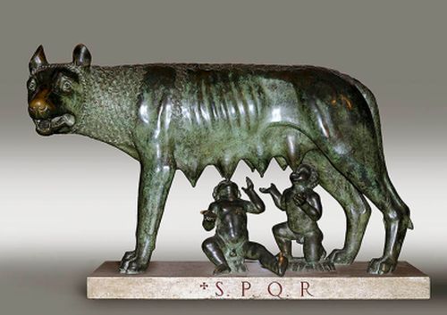 なおオリジナルの像も狼は古代エトルリア製で、ロムルス&レムスはずっと後の15世紀後半 ルネサンス期に付け加えられたものであり、古代ローマ人の手はほとんど入っていない作品と考えられています。