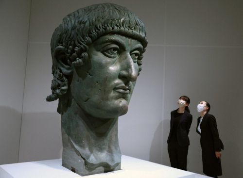 今回のメインのひとつでもあるコンスタンティヌス大帝の巨像は、頭部だけで高さ1.8mという巨大なもので、足や手のパーツ部分だけでも見るものを圧倒させる巨大さです。複製であるとはいえ、実際に相対すると威圧感があり、コンスタンティヌス大帝が掌握した権力の強大さが想像できます。