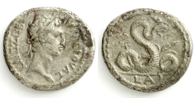 元旦の挨拶でご紹介したコインは、ローマ帝国統治下のエジプトで発行された4ドラクマ貨でした。コインにはアガトダイモンと呼ばれる神話上の大蛇が表現されています。